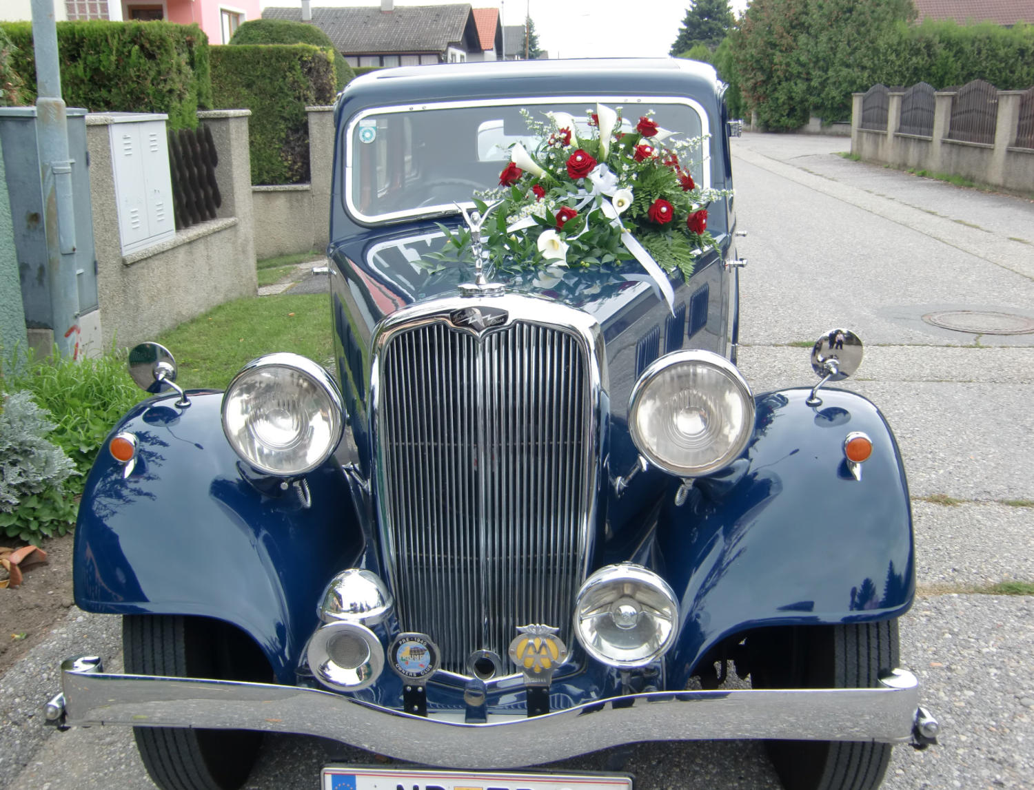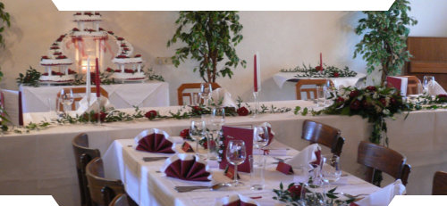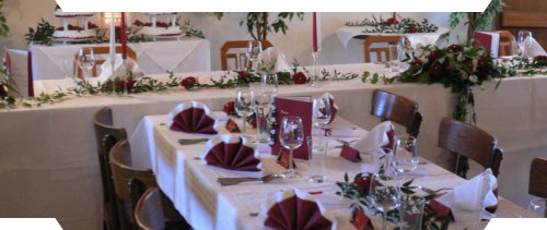Tischtuch, Saal und Brautstrauß ergibt sich